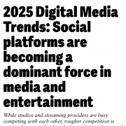 2025 Digital Media Trends: Social platforms are becoming a dominant force in media and entertainment. While studios and streaming providers are busy competing with each other, tougher competition is coming from social video platforms that are hyperscale and hyper-capitalized.In Deloitte's "2025 Digital Media Trends" report, traditional media companies face a powerful new competitor: social medi...