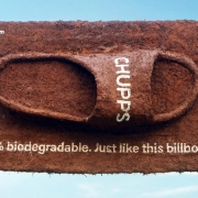 Footwear brand Chupps creates a biodegradable billboard shaped like a sandal that is designed to disappear and dissolve in the rain. Made from natural materials, the project was installed at Bandra Bandstand in Mumbai, India, and had long disintegrated when it rained during the monsoon season. Chupp’s sandal-shaped biodegradable billboard came to life by combining mud, hay, bamboo, cow dung, a...