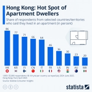 86 percent of Hong Kong respondents to a Statista survey said most recently that they lived in an apartment - the most out of 39 countries studied. Living conditions in the dense city are diametrically opposed to those in countries like Mexico, Australia or India where most people live in houses. Living in an apartment was also common in South Korea, Finland and Turkey.In Mainland China, 66 per...