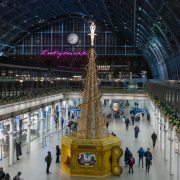 St. Pancras’ 2025 Christmas Tree Is a 12M Rotating Music Box