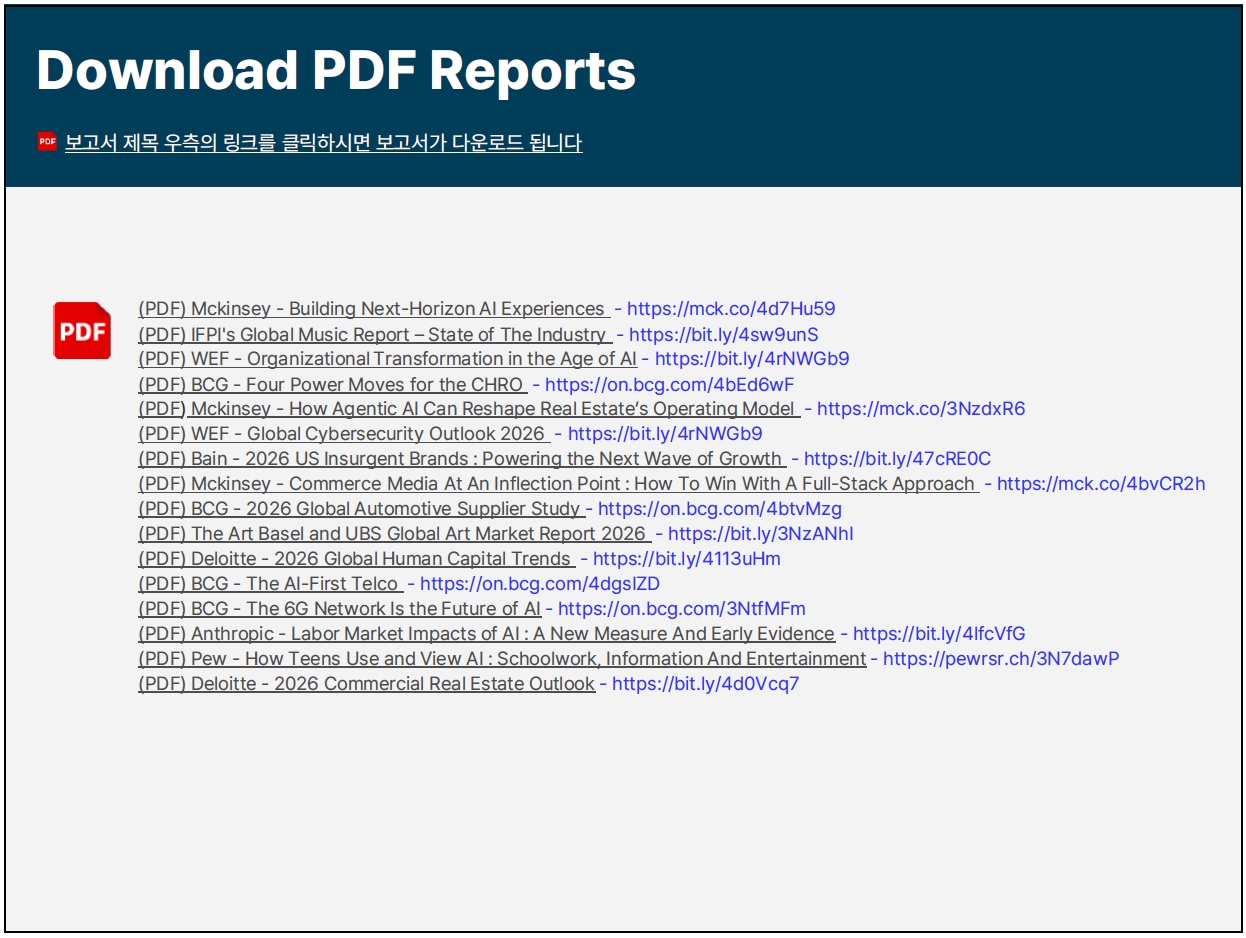 '인간 고유 역량(Human Edge)'의 경영 성과 증명: 기술 평준화 시대에 단순 기술 중심보다 인간 중심 모델을 추구하는 기업이 더 높은 재무 성과와 ROI를 거둘 확률이 높으며, AI 시대의 성패는 기술 그 자체보다 '사람과 조직 문화의 혁신'에 있음이 지표로 증명되었습니다.