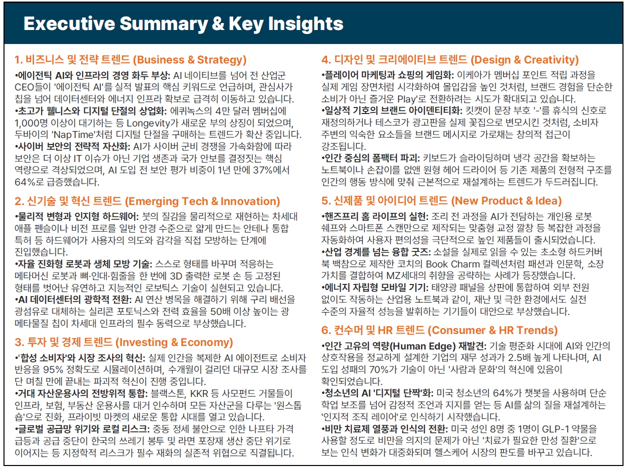 '에이전틱 AI'의 전 산업 확산과 경영 화두 부상: 기술 기업을 넘어 제조, 금융, 서비스 등 전통 산업군 CEO들이 실적 발표에서 에이전틱 AI를 핵심 키워드로 언급하기 시작했으며, 기업의 관심사가 단순 소프트웨어 도입을 넘어 데이터센터와 전용 에너지 인프라 확보라는 물리적 기반 강화로 급격히 이동하고 있습니다.